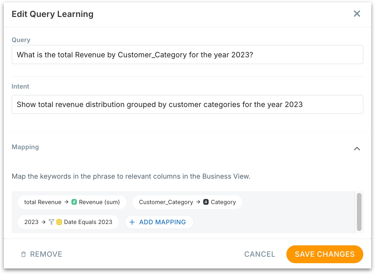 Kaiya now treats “intent” as an essential part of any query learning. Under Kaiya → Manage Learnings, query Learnings with only column mappings without an intent will be flagged with a warning. The intent defines the goal or meaning behind a natural language query, beyond just column mappings.