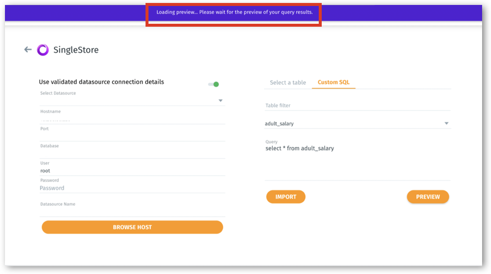 A notification message will be displayed when users click on "Preview" for custom SQL queries.