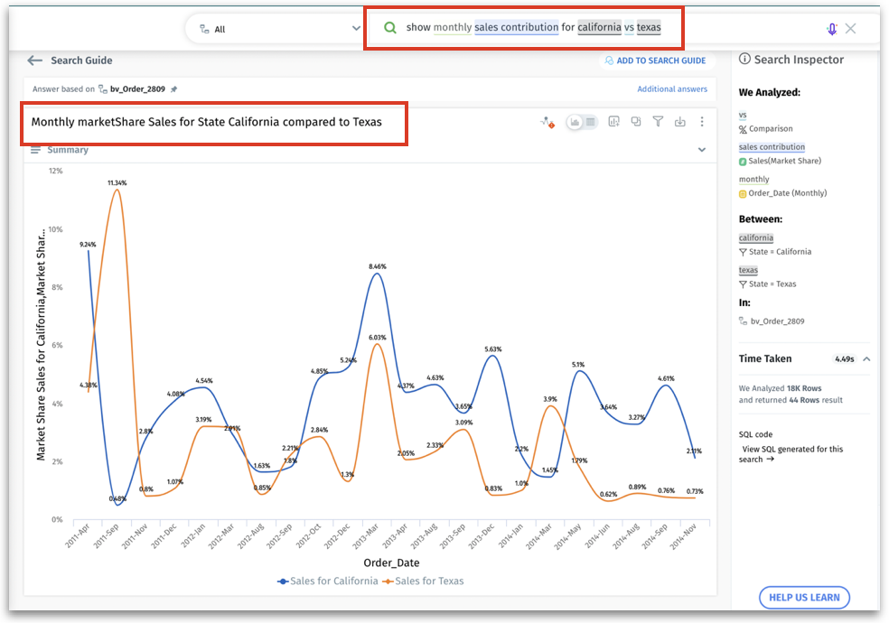We have introduced support for additional keywords synonymous with “marketshare”. Users can now use terms like “Contribution” and “Share” in their queries.