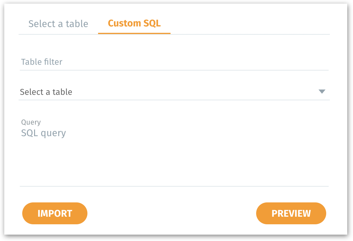 If you prefer more granular control or want to write your own SQL queries to load precisely the data you need, switch to "Custom SQL" tab.