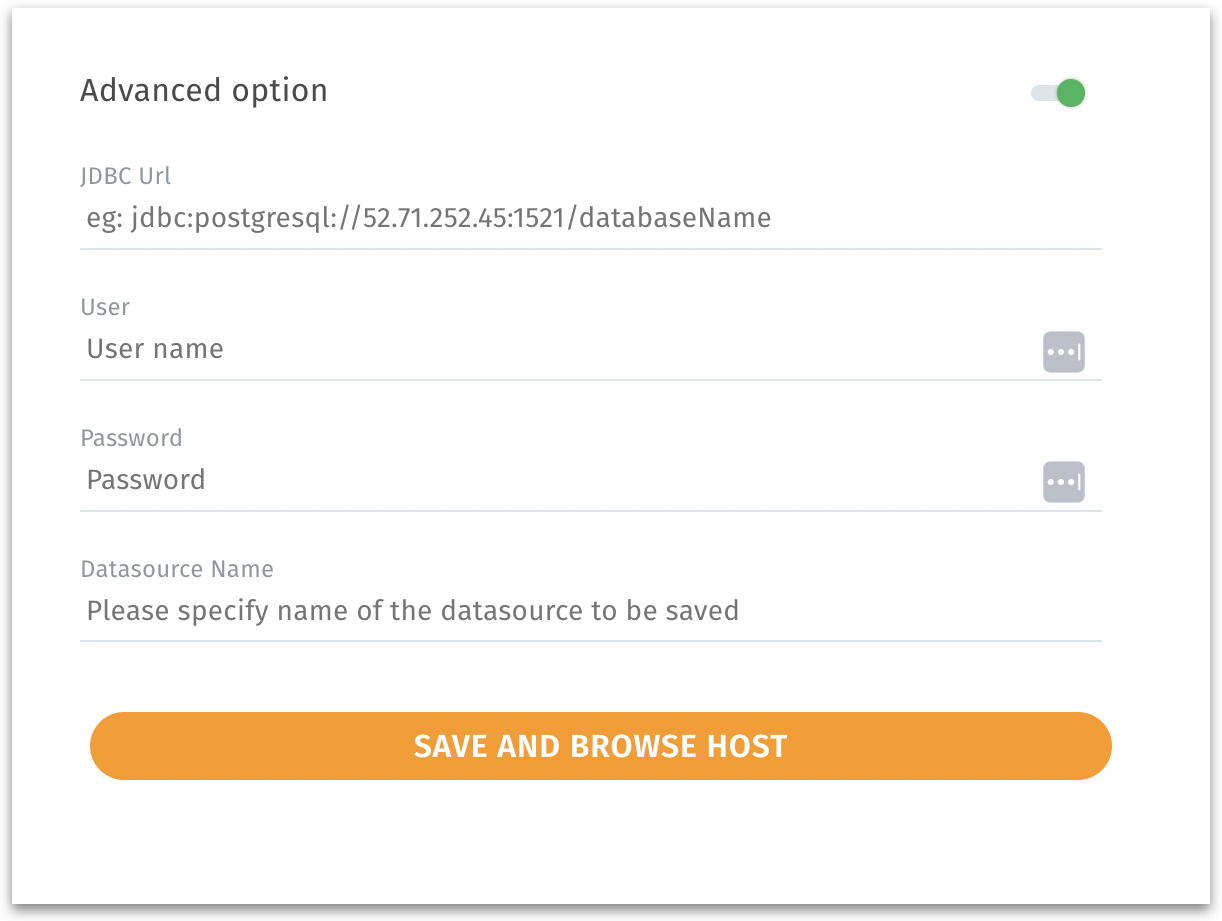 In the Advanced option view, you can override the default host/port fields by directly specifying a JDBC URL. This is especially useful if your Spark setup requires custom parameters or if your environment differs from typical host/port authentication.