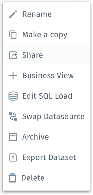 Rename: Allows you to change the dataset’s display name.