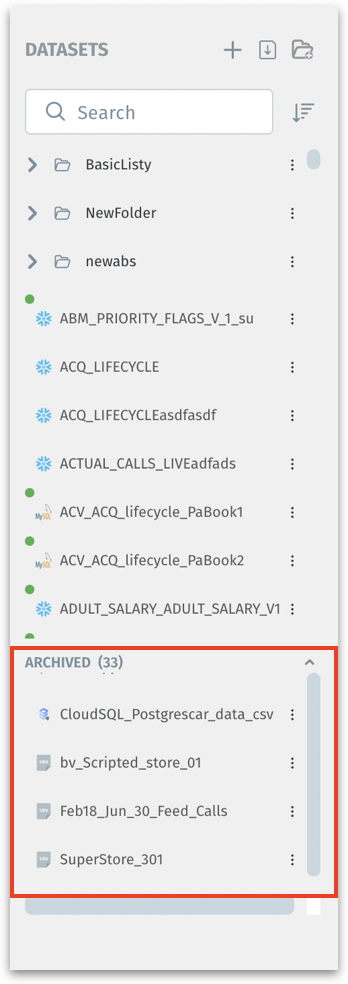 Archive: Moves the dataset into an archived state, indicating it’s no longer actively used. This frees up the main workspace and helps keep active lists organized while still retaining access to older datasets if needed in the future.