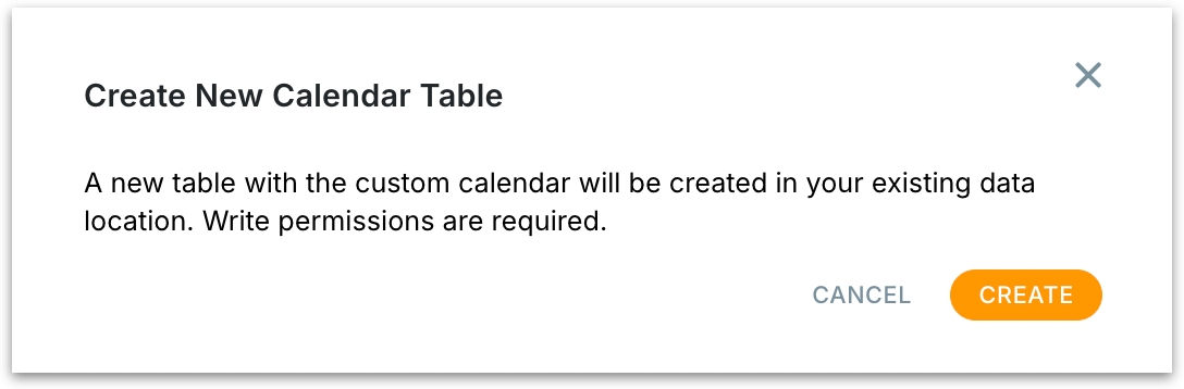 • Create: If you have write access, Tellius will generate and save a new calendar table directly into your data source.
