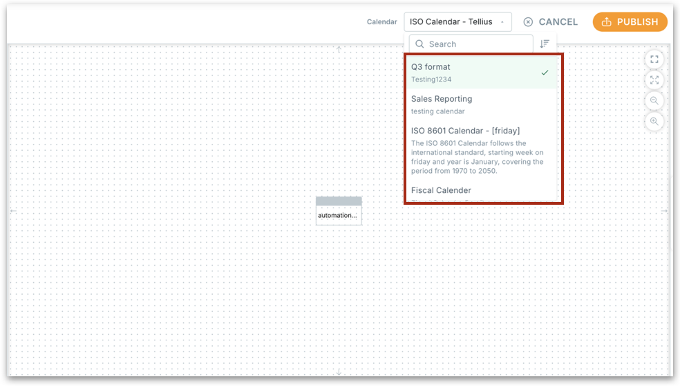 Click the dropdown to select from your list of predefined calendars—including any custom fiscal or ISO calendars you've created.
