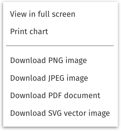 Click on the burger menu icon above the chart to view the following menu. Here, you can,