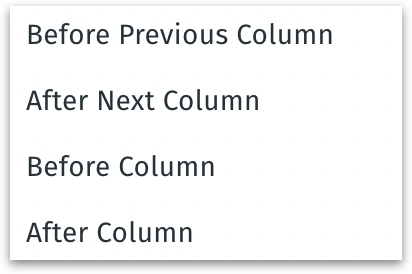 Move Column: Reorder columns in the dataset (e.g., bring an important column to the front). This has sub-options like Before previous column, After next column, Before column, and After column.