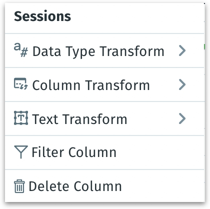 Click on any required column name, and you can view the following menu. These transform tools allow you to refine and reshape columns in various ways—whether adjusting data types, altering text, or performing merges and splits.