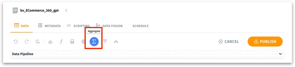 Above Data Pipeline, click on the Aggregate option.