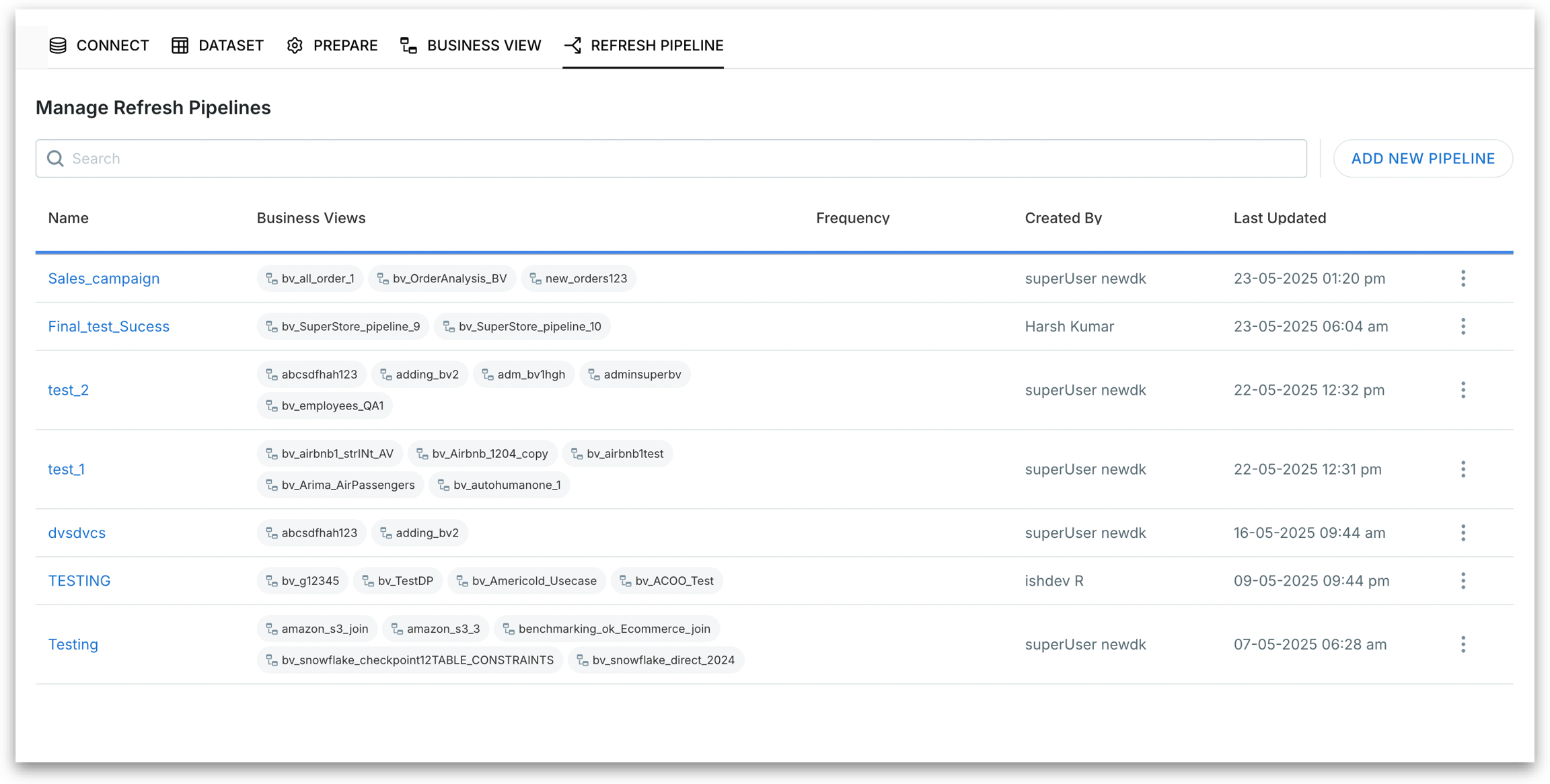 The new Refresh Pipeline offers a visual, intelligent orchestration layer to schedule, manage, and monitor Business View and dataset refreshes.