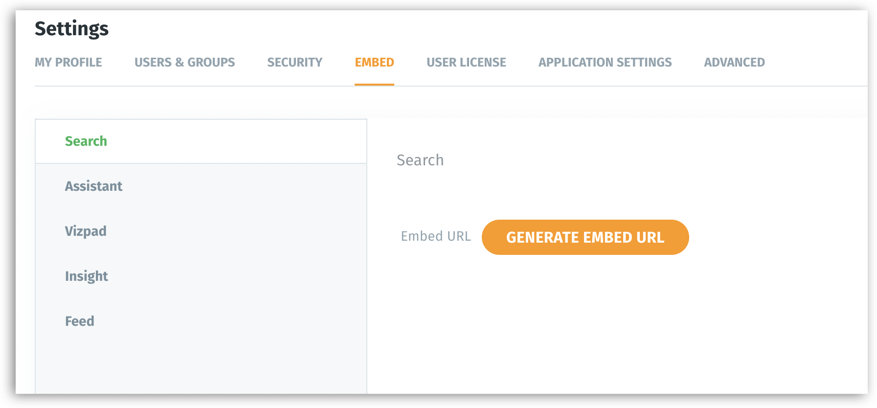 Navigate Settings → Embed → Search.