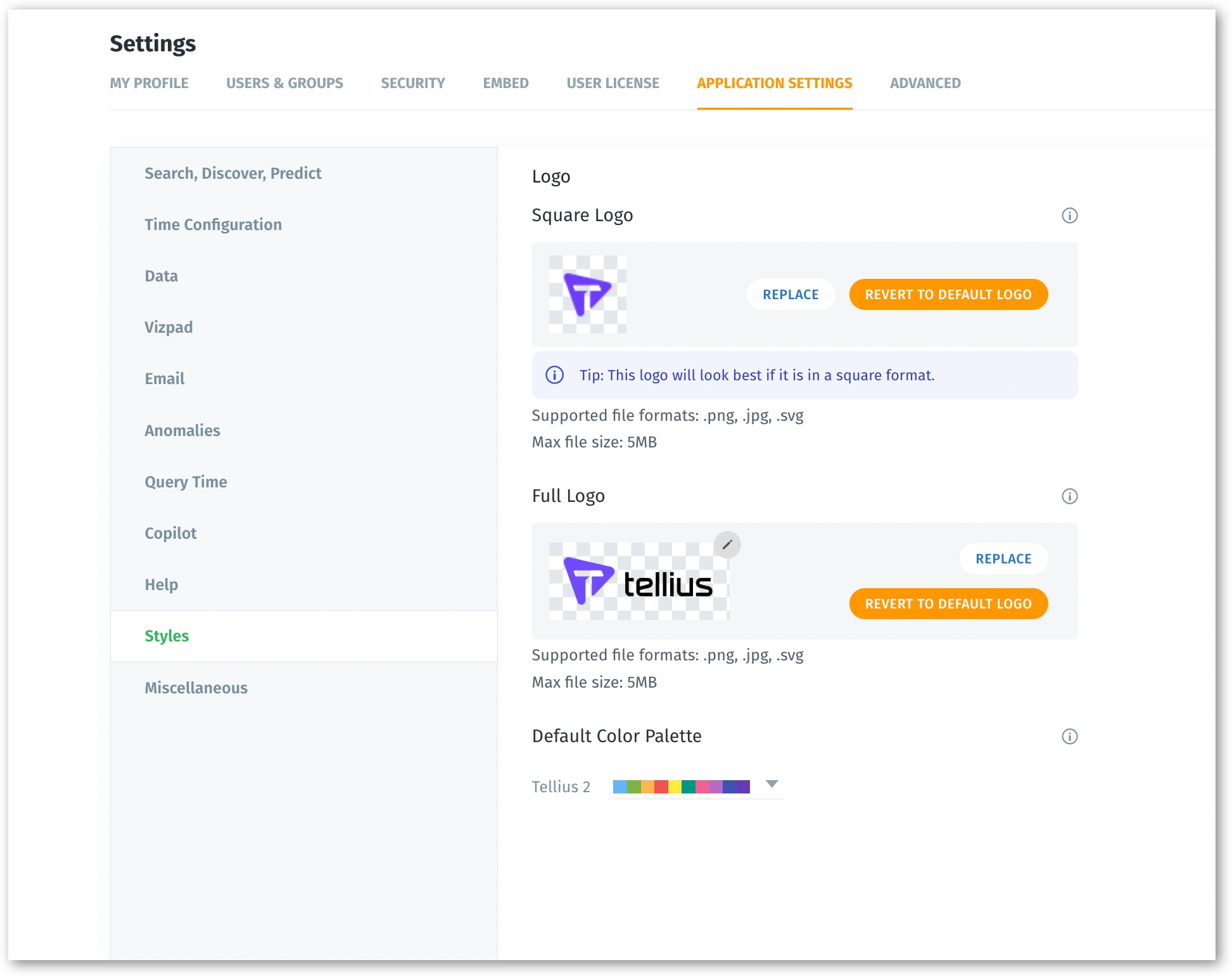 To make Tellius more personalized for your organization, you can customize its appearance by adding your own logo and changing the color scheme.