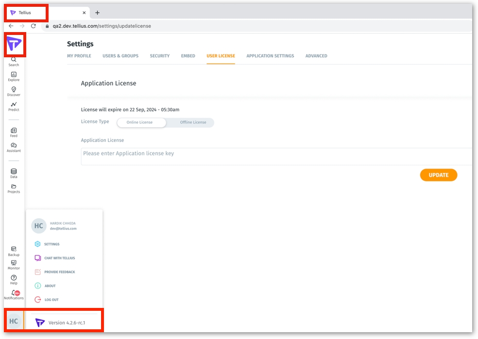 Customize Tellius by uploading your organization’s logo and selecting a color palette. Super users can update branding for the login page, UI, and overall experience.