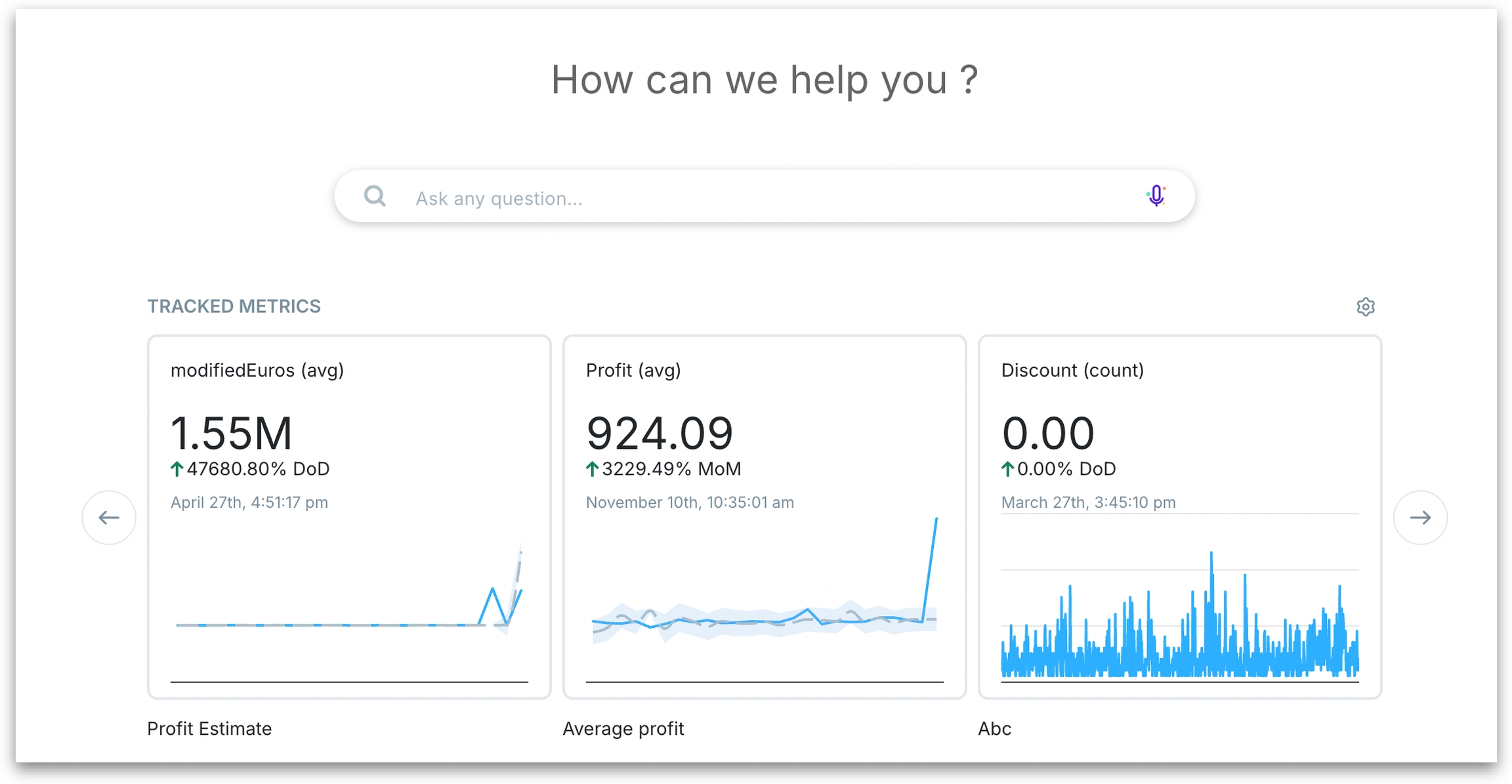 This section allows you to pin and monitor key metrics directly from your Vizpads or Feeds. It's built for users who need real-time visibility into business-critical KPIs without navigating into detailed dashboards every time.