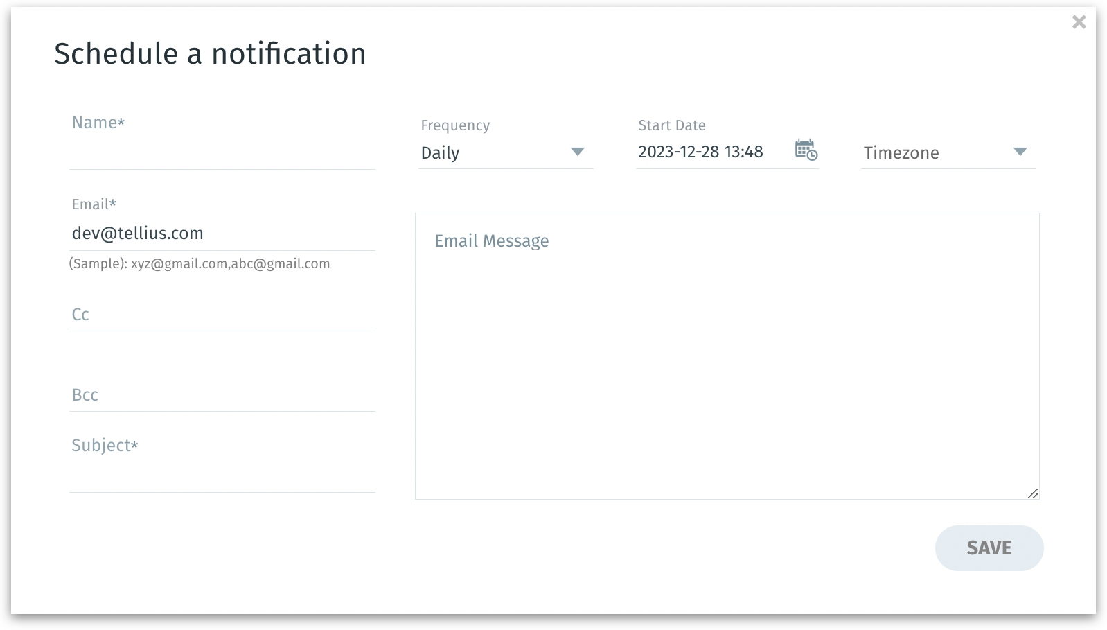 Click on the plus icon to schedule a new notification. The following window appears. Provide the following details: