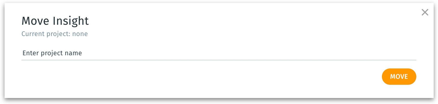 d. Move - To move the Insight to a specific Projects folder. The following window appears where you can provide the Project name to be moved.