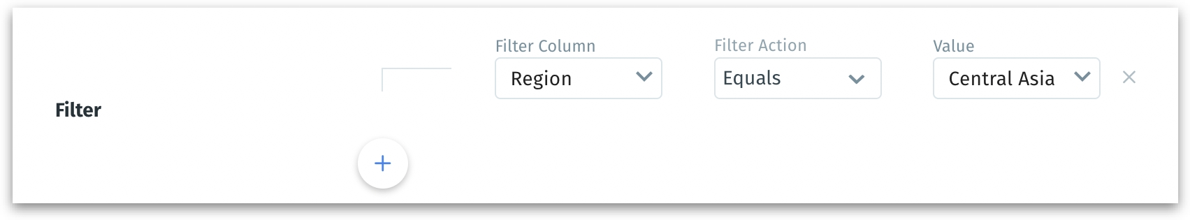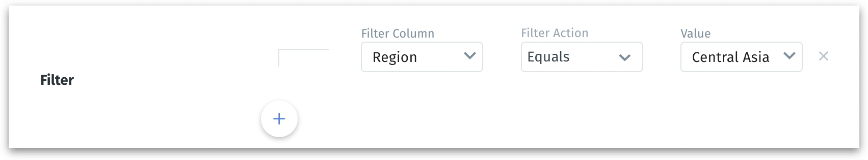 - Click on the "+" sign to view the filter condition fields. Select the required column, operator, and value. To apply more filters, click on the "+" sign again. Click on the "x" sign to remove the filter.