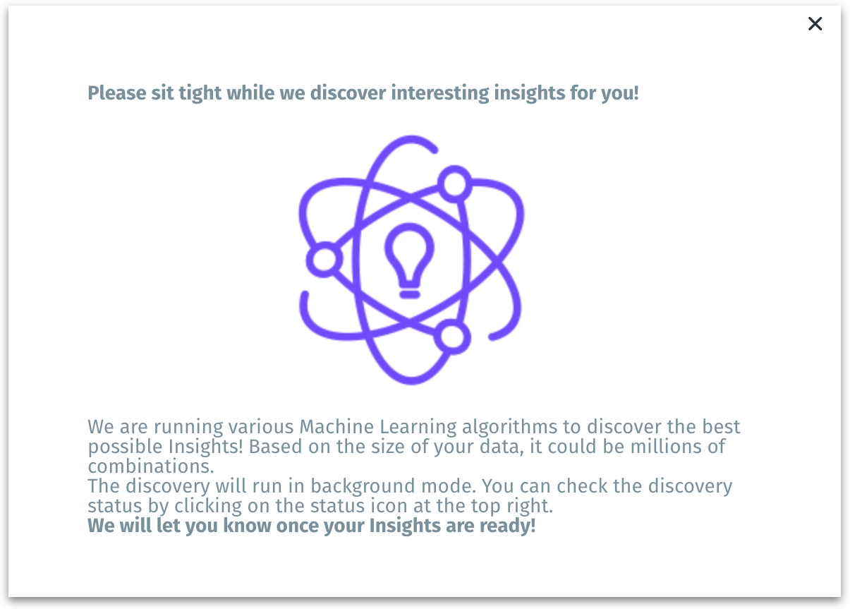 Once you click on Create, the Insight generation will begin and the following screen will be displayed.