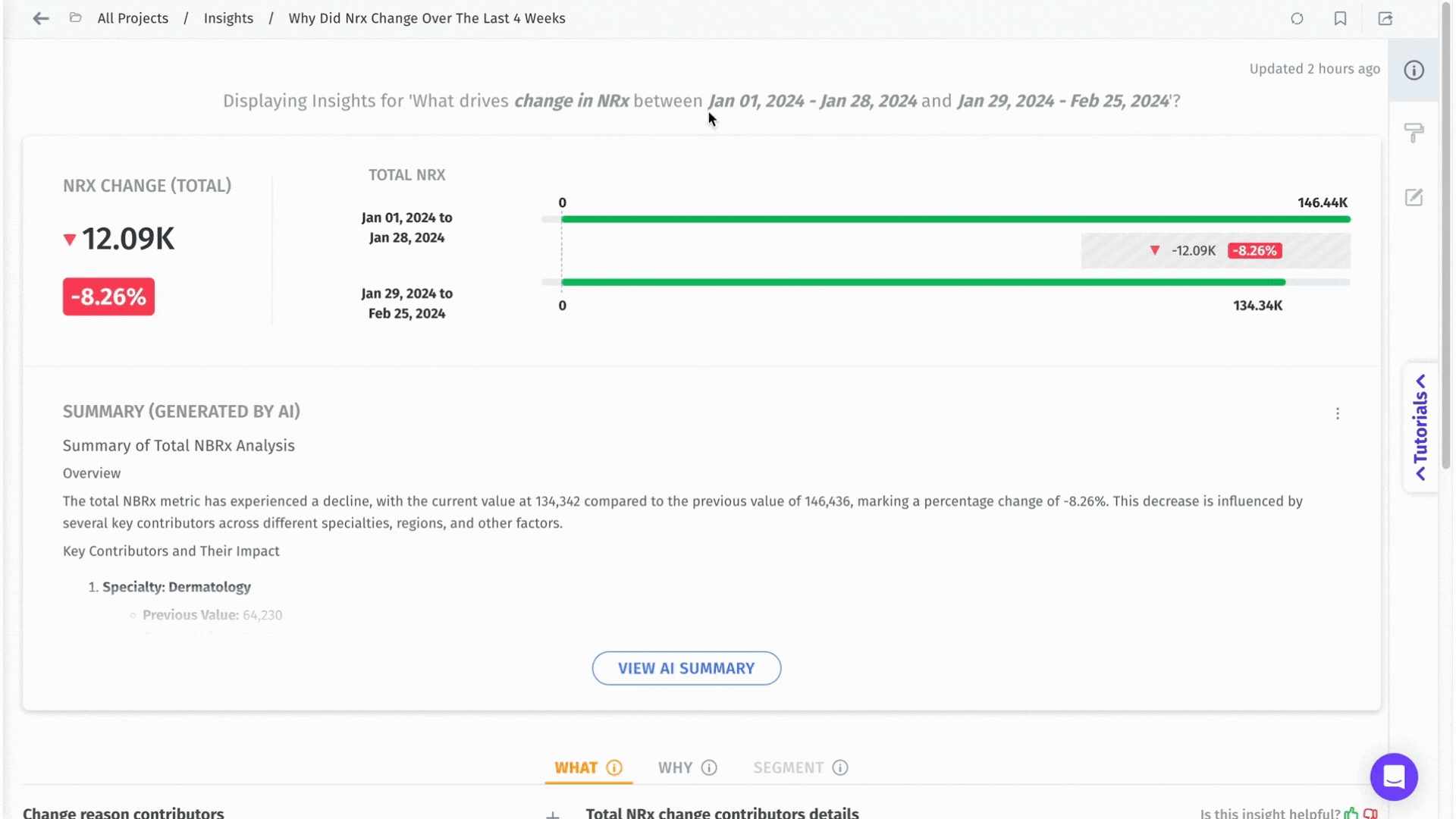 “Why has the revenue dropped?” - Identifies top declining segments between two time periods