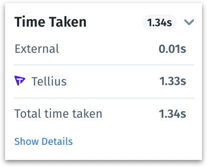 This section not only shows the time taken to execute the query but also distinguishes between the time consumed by Tellius’s own engine and other external engines.