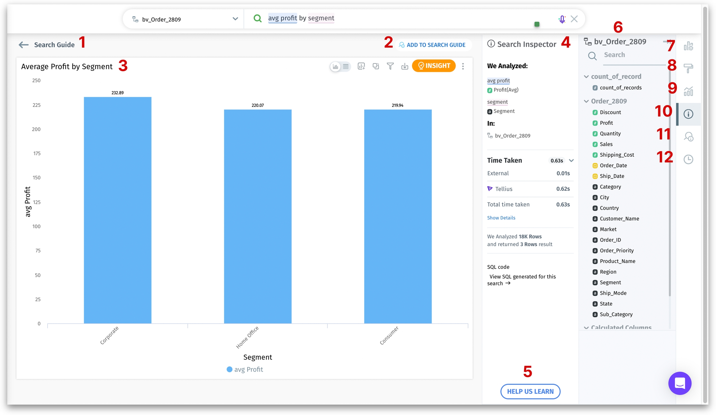 If the search results don’t align with your expectations, use this feature to guide Tellius in better understanding how to segment your query.