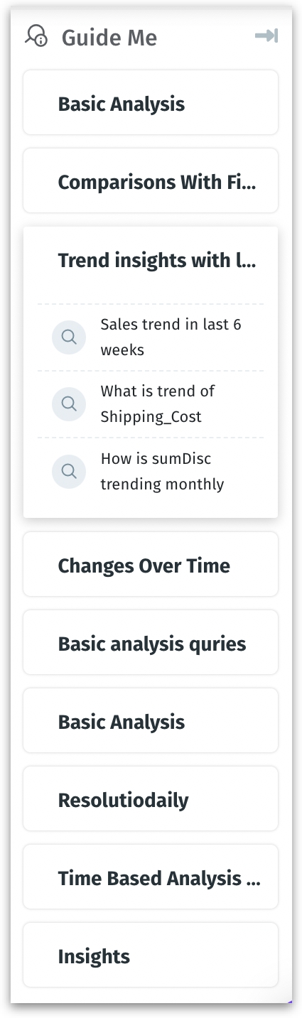 Please note that clicking on the Search Guide option in the right pane will display the Search Guide queries in the adjacent panel while keeping the search results intact. However, clicking on the Search Guide (listed #1) will remove the results and move back to the Search Guide.