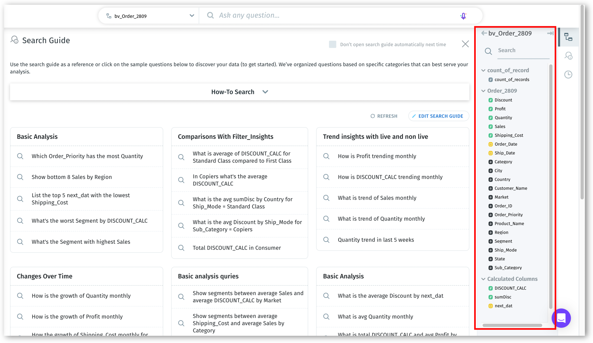 Type natural language queries to explore data, get real-time visual results, and refine insights with interactive tokens, auto-suggestions, and voice input.
