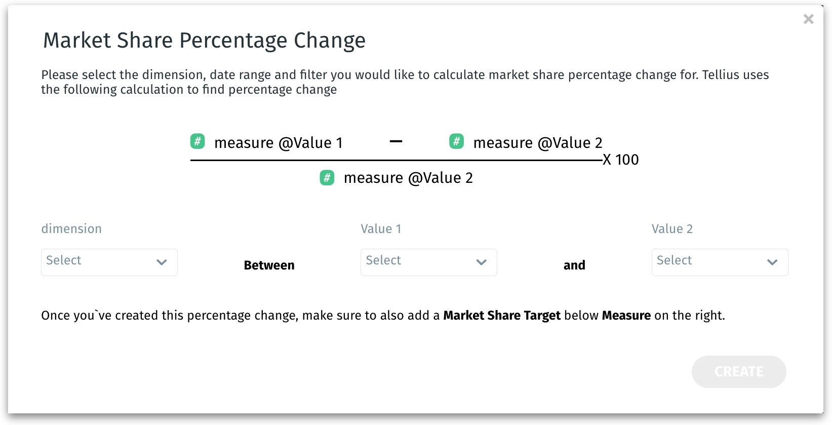 After setting up the absolute change calculation, you are prompted to also add a Market Share Target filter, allowing for a targeted analysis of market share changes.