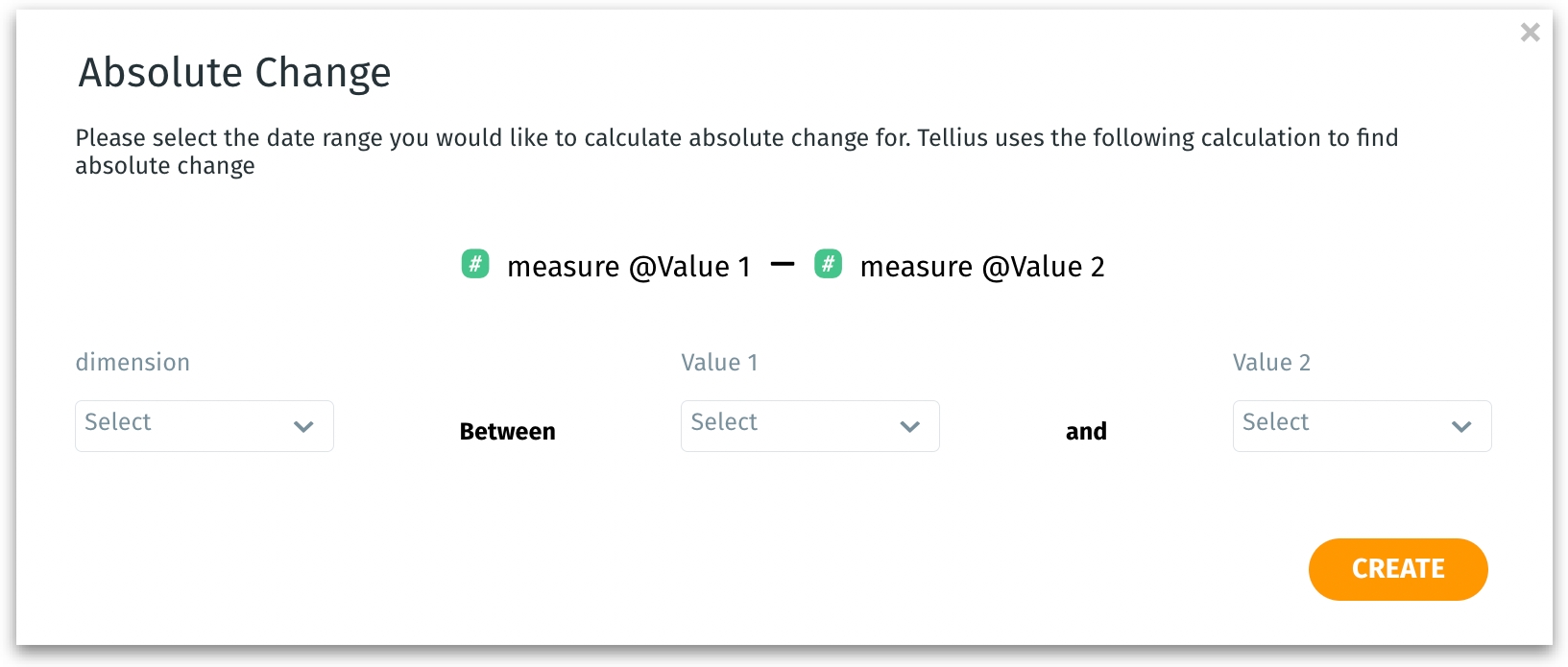 The Absolute Change calculates the exact increase or decrease between two data points. This is essential for identifying trends, shifts, and changes in your data over time.