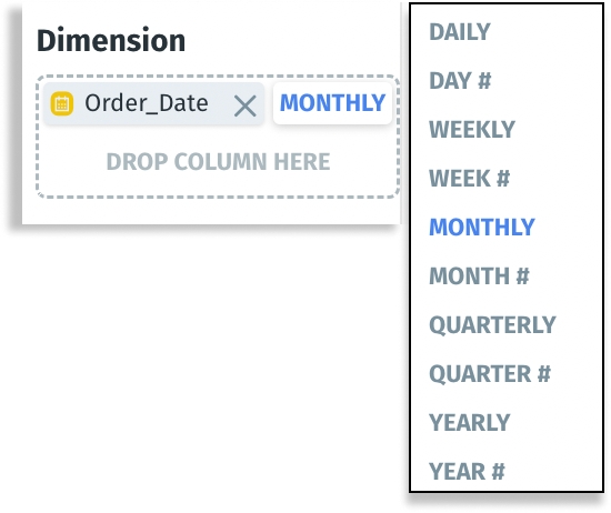 The aggregation options for date-related columns allow you to group your data based on different time intervals.