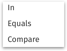 For measures - equals, does not equal, greater than, greater than or equal to, less than, less than or equal to, inbetween