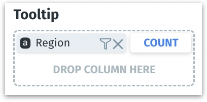 When a column is added to the Tooltip field, and if it is a measure then the aggregation label for measure (as described above) will be displayed. If the column added is a dimension, then the count aggregation will be displayed.