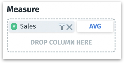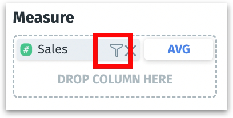 A filter icon appears next to the "x" icon for each measure added to a field, allowing you to narrow down or refine the data displayed in your charts.