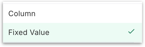 Value type: Toggle between "Column" (dynamic comparison) and "Fixed value" (static number).