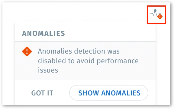 If the chart has one too many anomalies that might hinder performance, then Tellius automatically hides them and shows an icon in the chart result window.