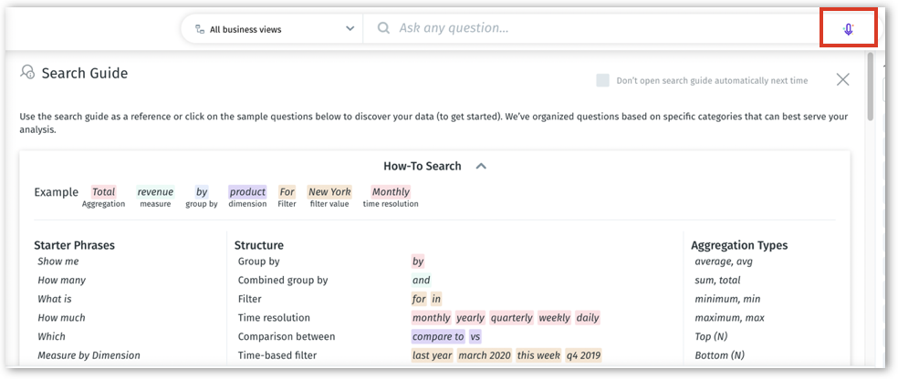 Tellius offers a voice-driven search feature, that allows users to verbally pose queries in human language, facilitating a more intuitive and efficient search experience. By leveraging voice-driven search, users can enjoy a more natural and streamlined interaction with Tellius