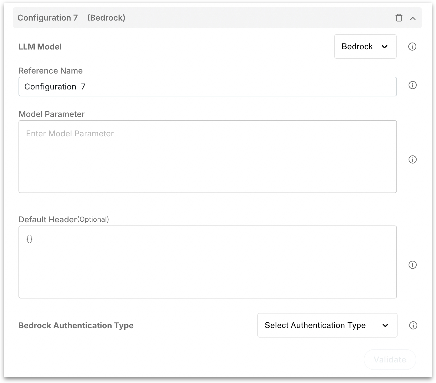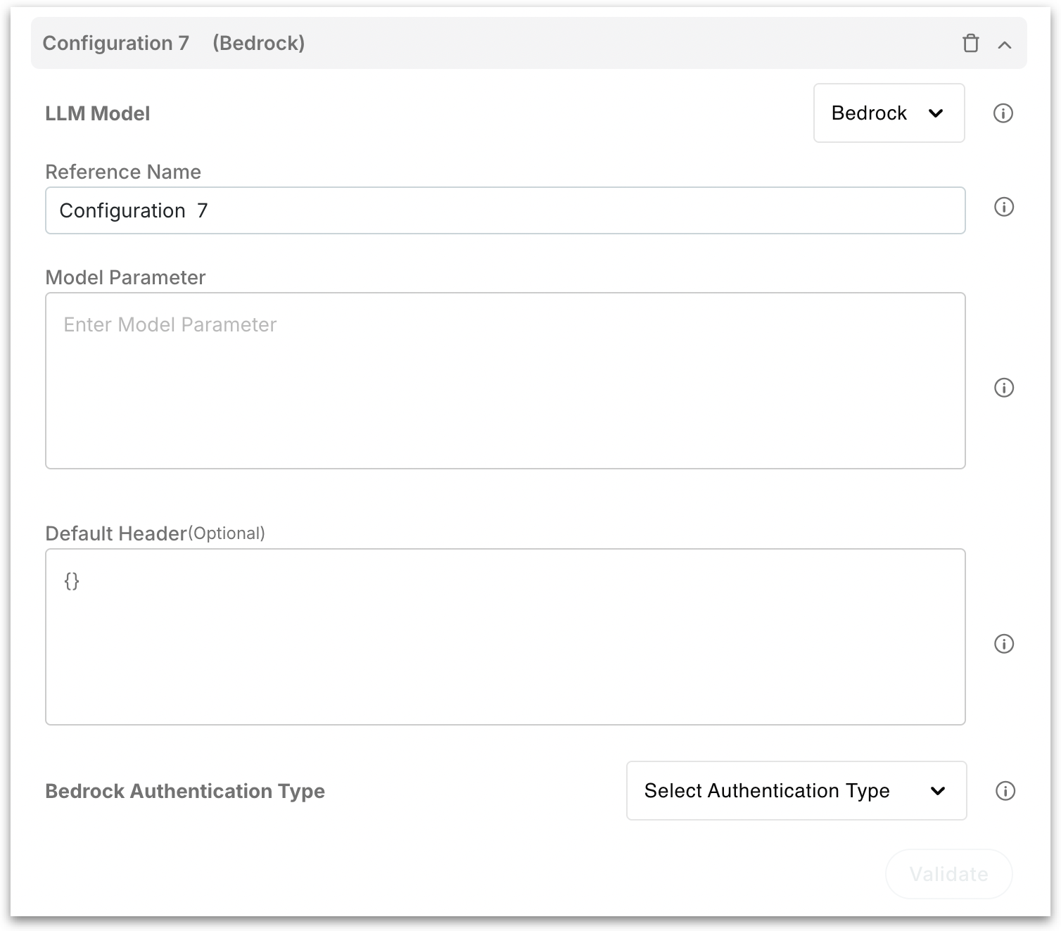 You can add as many LLM configurations as you need (for different models/regions/temperature profiles). There must be at least one saved configuration to assign.