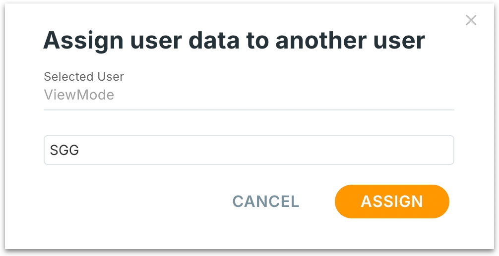 Click on Assign to transfer the ownership from the selected user to the target user. Click on Cancel to close the dialog without making any changes.