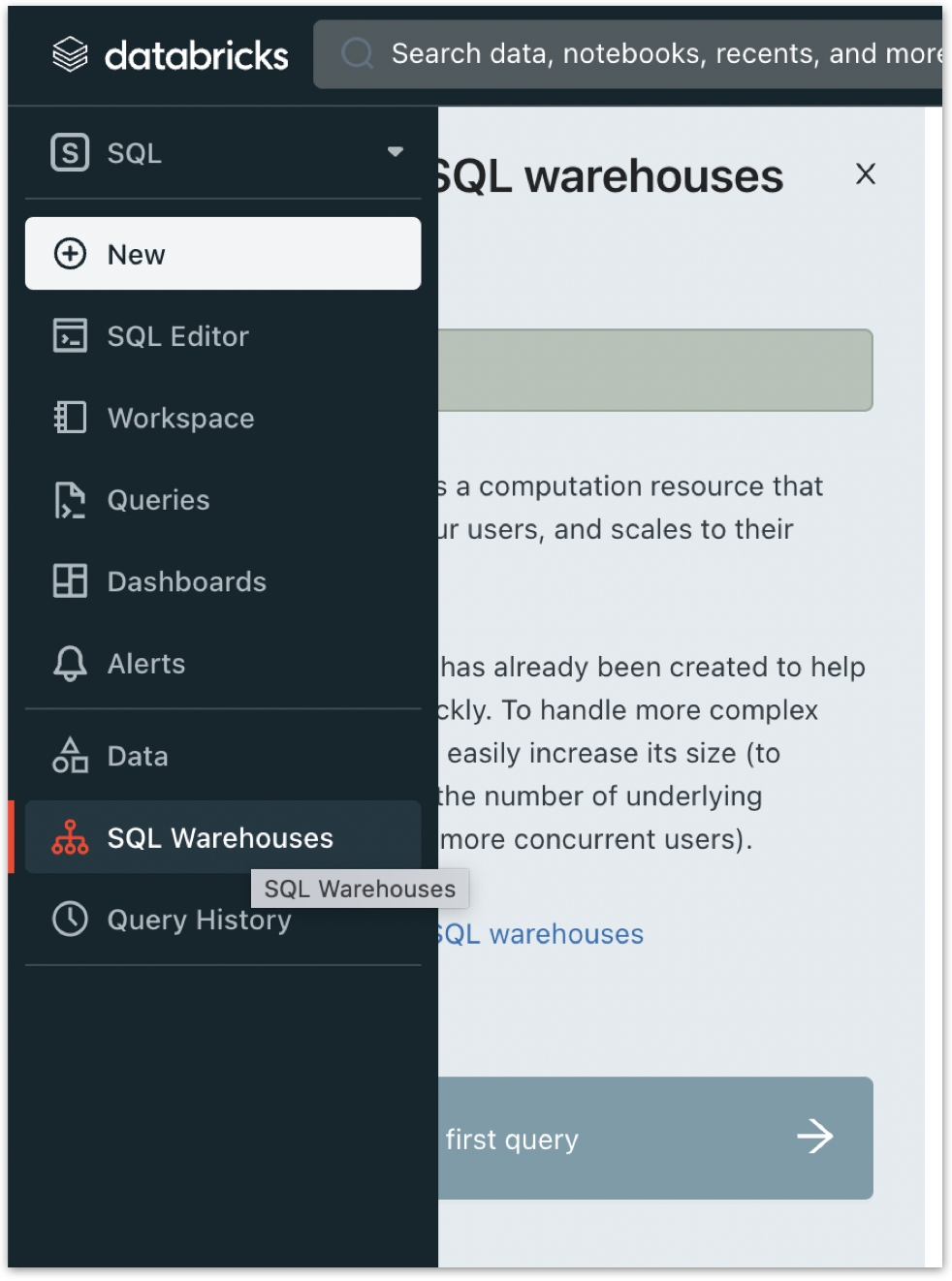 In the left menu, select SQL Warehouses and choose the required warehouse.