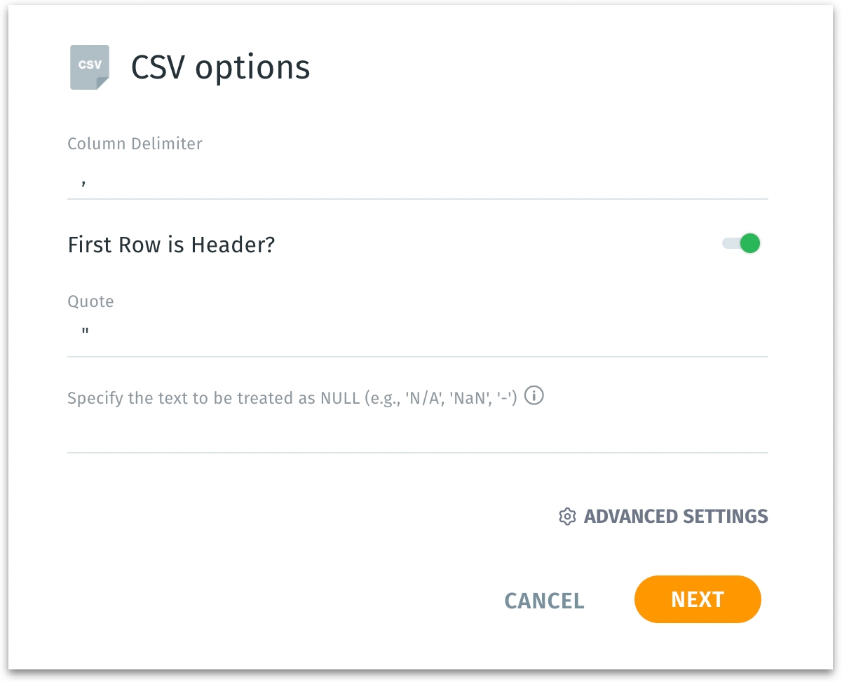 Ensures Tellius correctly identifies columns and parses the file structure accurately. This is the character used to separate individual columns in your CSV file (commonly a comma ,