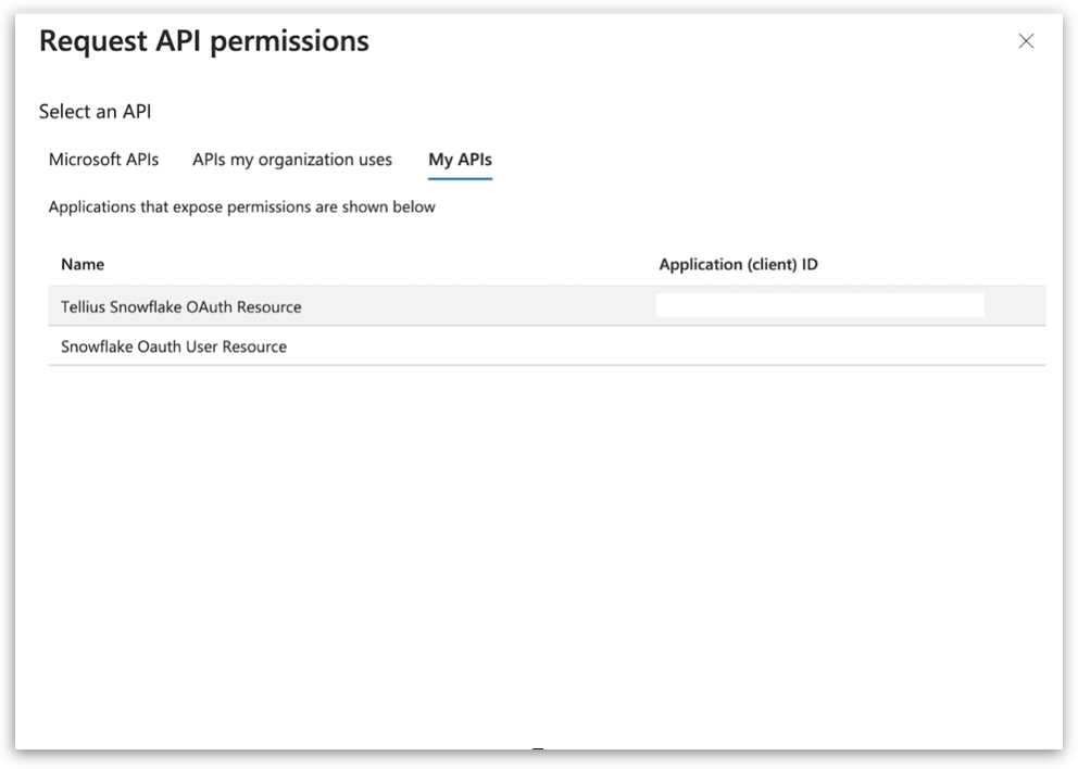 Pick My APIs and choose the Snowflake OAuth Resource you set up earlier.