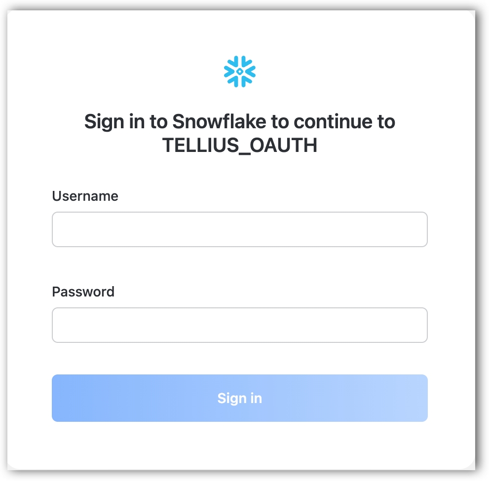 In addition to requesting a username and password, Snowflake also seeks your consent so that Tellius can access and retrieve your data from Snowflake.