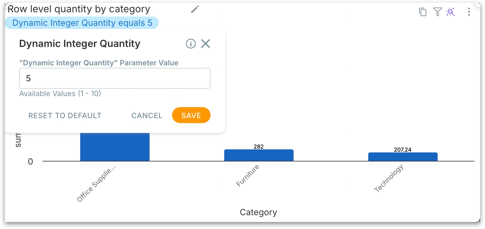 Upon change, the chart is re-rendered instantly using the new parameter value.