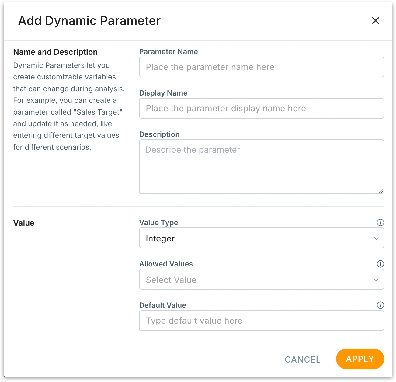 Dynamic Parameters let you create flexible, runtime-changeable values that you can use inside calculated columns. This means you can build formulas once and adjust their behavior on the fly—without needing to rewrite them or republish the Business View.