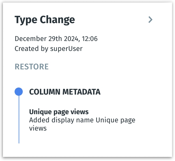 The pane includes a Restore button that reverts the pipeline (and thus your dataset) to the state at that step. Once discarded, the pipeline and data revert to the state of the previous node.