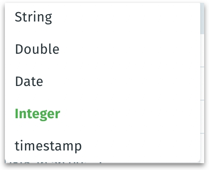 Double: Interprets the column as floating-point numeric type (e.g., 3.14159). Use if you need decimal precision or have fractional values.
