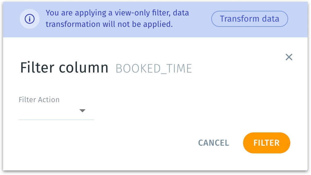 If you do want to permanently remove or transform rows in the actual pipeline, you can click “Transform data” to switch modes and the following window will be displayed.