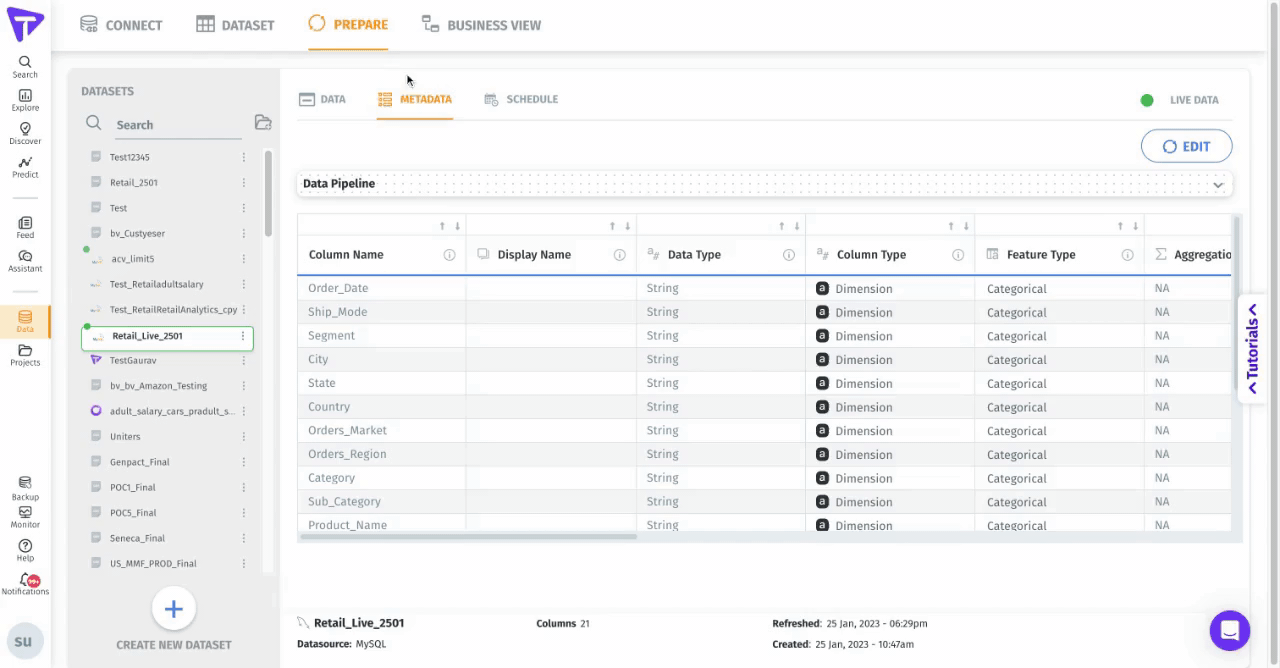 Properly configuring your metadata ensures that Tellius can accurately interpret and process your data, whether you’re performing self-service analytics, creating AI-driven insights, or building predictive models.