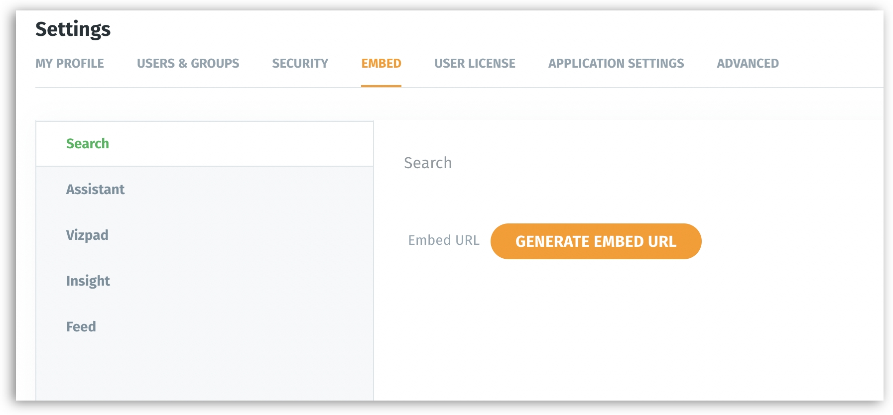 Navigate Settings → Embed → Search.