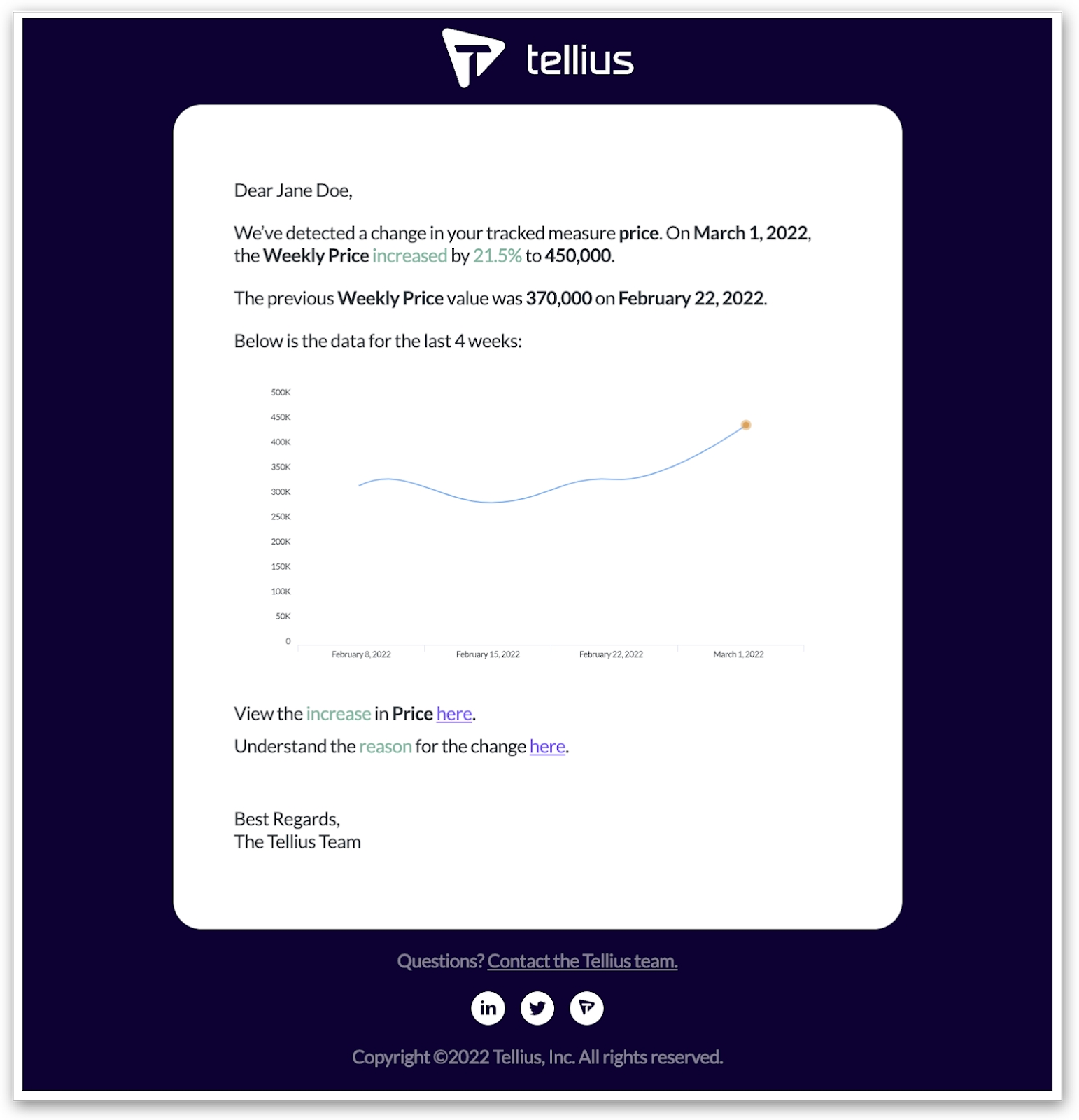 An email will be sent to the creator and subscribers of the Feed. The email contains the details of the anomaly along with links to the generated Feed and associated objects. The following is a sample email:
